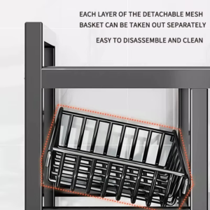 Each layer of the removeable mesh basket can be removed and cleaned separately.