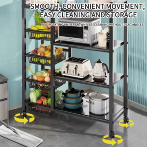 A placeholder for your knives, plates, chopping board, dish rack, storage rack and so on. It is also very easy to mount and clean up. Firm and very strong to bear any load you put on it.